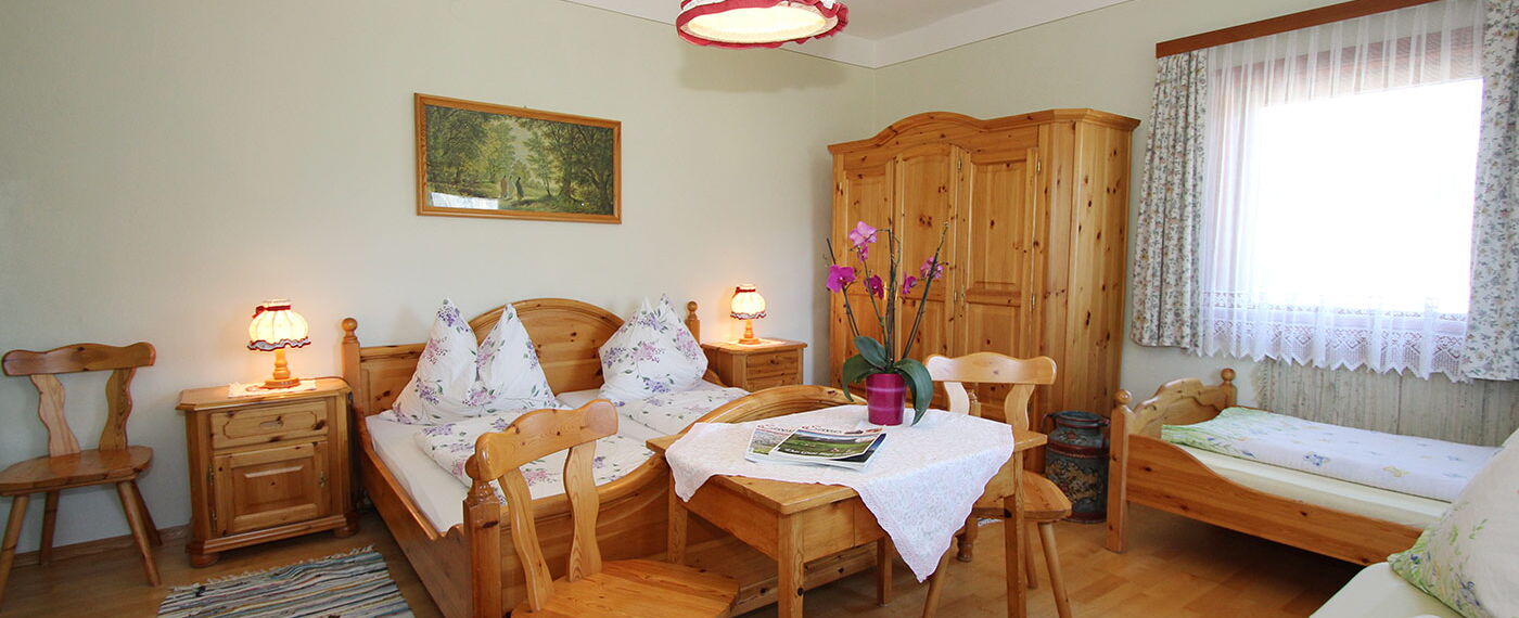 Das helle freundliche Zimmer bietet Platz für 2-4 Personen und ist perfekt geeignet für Familien. Das Zimmer ist mit Vollholzmöbel und mit viel Liebe zum Detail ausgestattet. Es befindet sich eine Sitzgelegenheit und genügend Stauraum im Zimmer. Das Badezimmer ist mit Dusche und WC ausgestattet. Für ein gemütliches Zusammen sitzen steht ihn unsere gemütliche Zirbenstube zur Verfügung, hier können Sie sich ihr Frühstück oder Abendessen schmecken lassen.